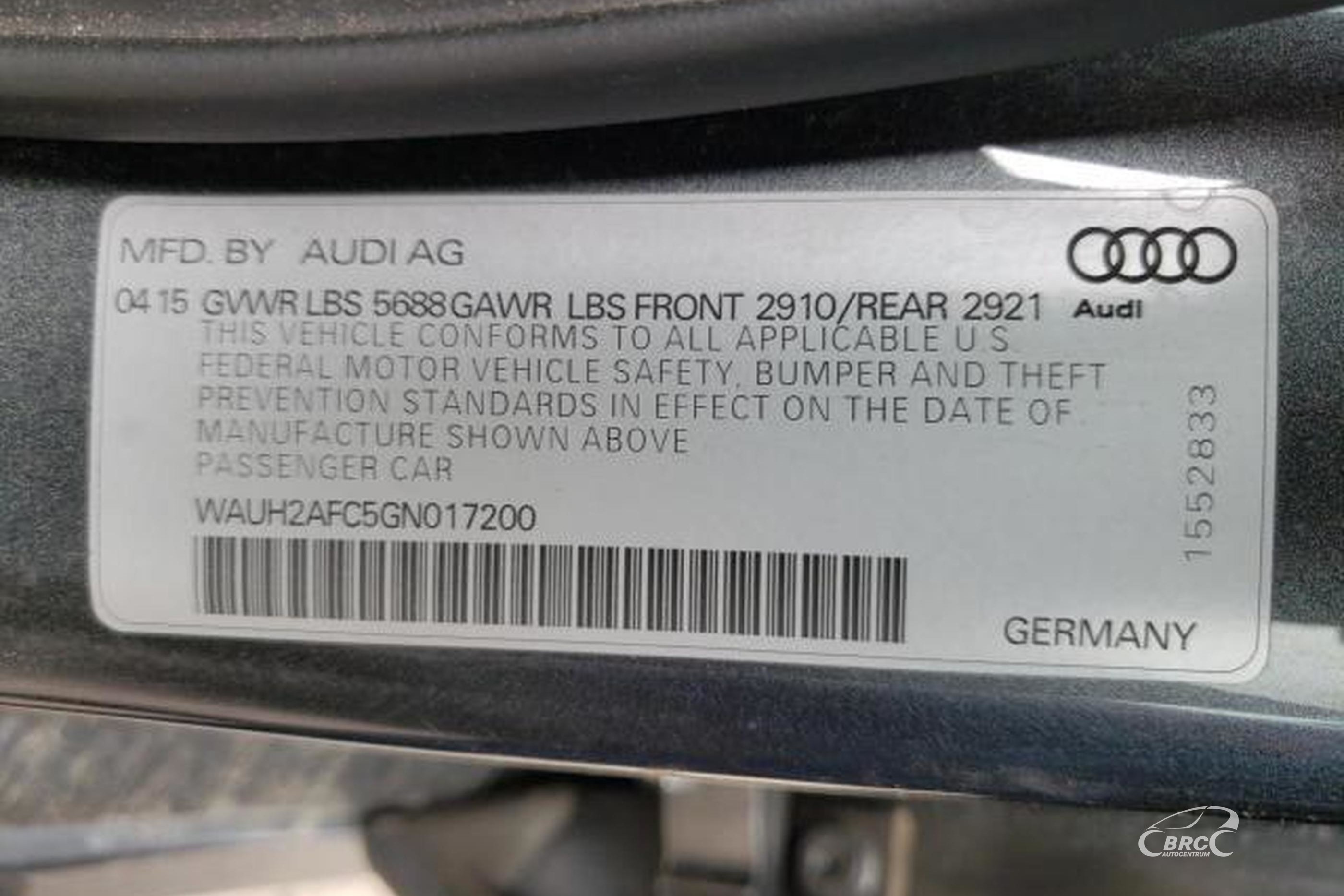 Vin: WAUH2AFC5GN017200